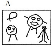 子どもの絵の発達において( A 頭足人 )と呼ばれる表現がある。おおよそ( B 2歳 )から( C 4歳 )頃とされているが、小学生でも( A 頭足人 )を描く例もある。このことについて、コックス(Cox, M.V.)は( D へそ )を加筆させる実験を行い、頭部と思われていた丸の部分に加筆がされたことから、この形は頭、首、胴を含めた全体の表現であるとした。これは、( E 前図式 )期と呼ばれる描画の発達段階を理解するうえで重要なポイントである。