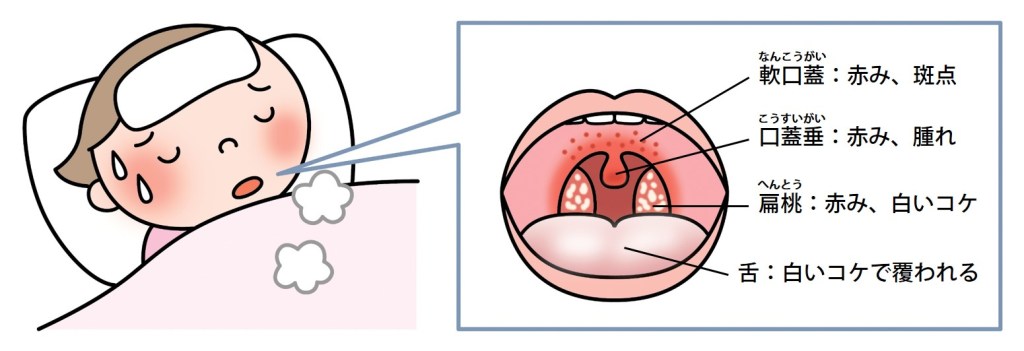 溶連菌感染症は、発熱がありのどの痛みを訴えます。