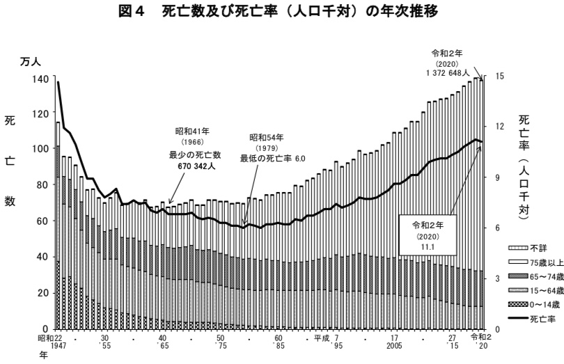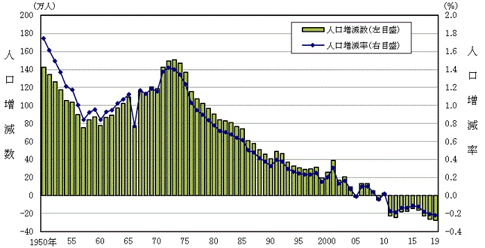 自然増減とは、住居の移動を除いた人口の増減。死亡数から出生数を減じた数です。
