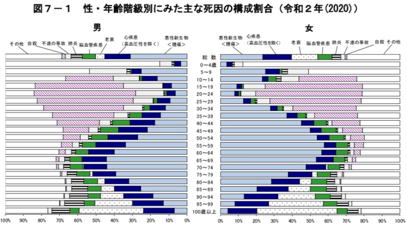 15歳~19歳、20〜24歳、25〜29歳の男女とも、死因の第1位は自殺です。