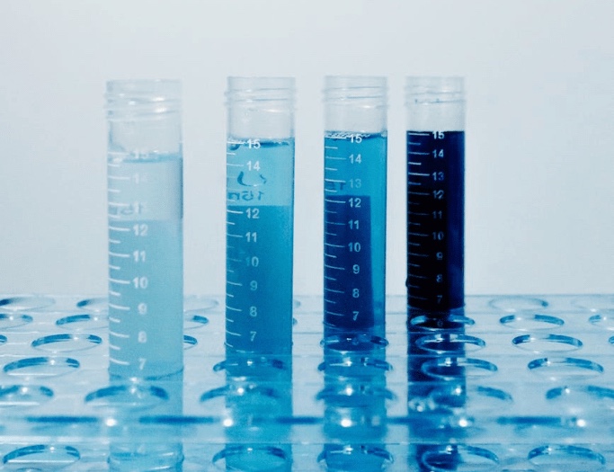 下図のコップ①と②に、それぞれ同じだけの液体を入れたものを子どもに見せ、「どちらのコップにたくさんの液体が入っていますか。それとも同じですか」とたずねます。