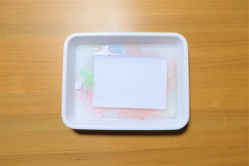 - マーブリングは、絵の具や墨汁を水面にたらして、水の流れで模様を作り、紙を被せて写し取ります。