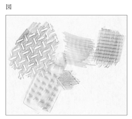 次の文のうち、下の図で用いられている表現技法「フロッタージュ」の説明として適切なものを○、不適切なものを×とした場合の正しい組み合わせを一つ選びなさい。