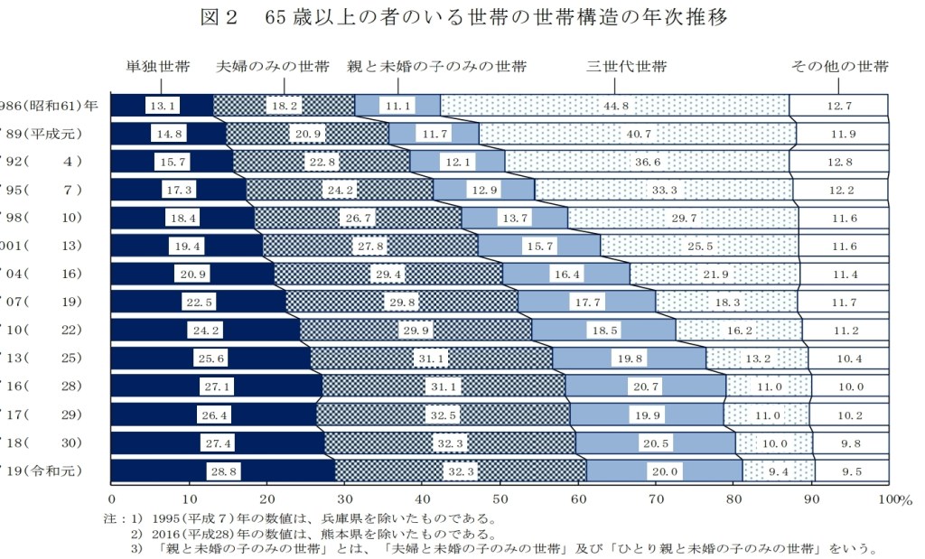 〜三世代世帯が少なく、高齢者は子と同居する者が少ないことがわかります~