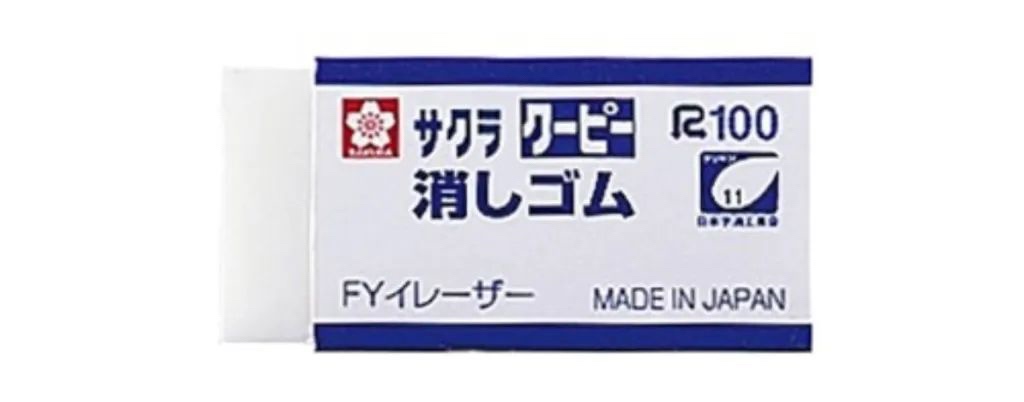 色鉛筆を綺麗に消せる消しゴムはありませんので、クーピー用消しゴムを買うか、お守りとしての鉛筆用消しゴムを揃えます。