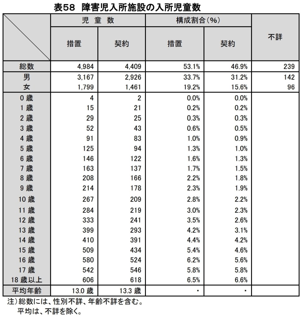 × 4.入所児童に対する学校教育の保障のため、すべての施設内に分校または分教室が設置され、学校教育を実施している。